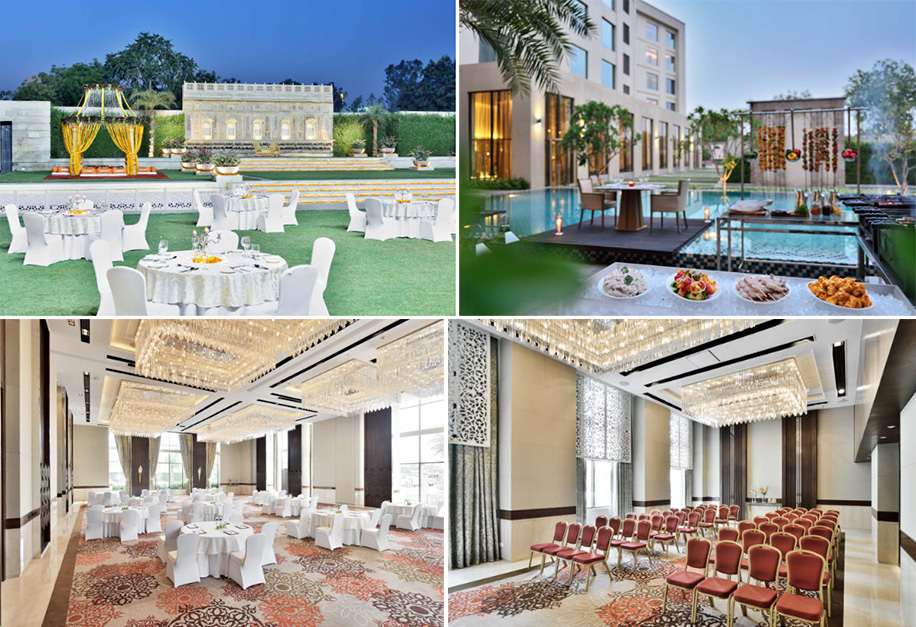 The Courtyard Marriott Agra has one of the most romantic views in the world. Its 26,000 sqm lawns outdoors offer incredible views of the ultimate symbol of eternal love, The Taj Mahal. The perfect backdrop to you exchanging your matrimonial vows, plan your wedding around a full moon night and you’re guaranteed some stunning photographs. If you prefer an indoor setting, the hotel’s Grand Ballroom is a more contemporary venue and can easily accommodate up to 400 guests.