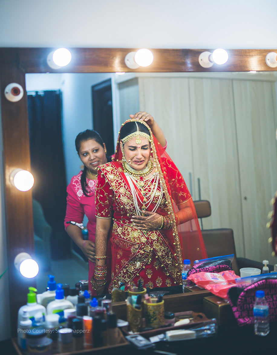 Team Sutra Snapperz shares the story behind this intense moment captured on camera. “It was a regular makeup shoot for Ankita, the bride. Generally, we like to talk to brides when shooting since it makes them feel comfortable and relaxed to have you around on their big day. The photo shoot was as candid as possible and she looked stunning in every picture. Ankita was all smiles and happy until we mentioned her mother in the conversation, and then she burst into tears like a baby. This was extremely special for us since we were there to witness how overwhelmed Ankita was at that time to let go of her loving parents and step into a brand new life.”