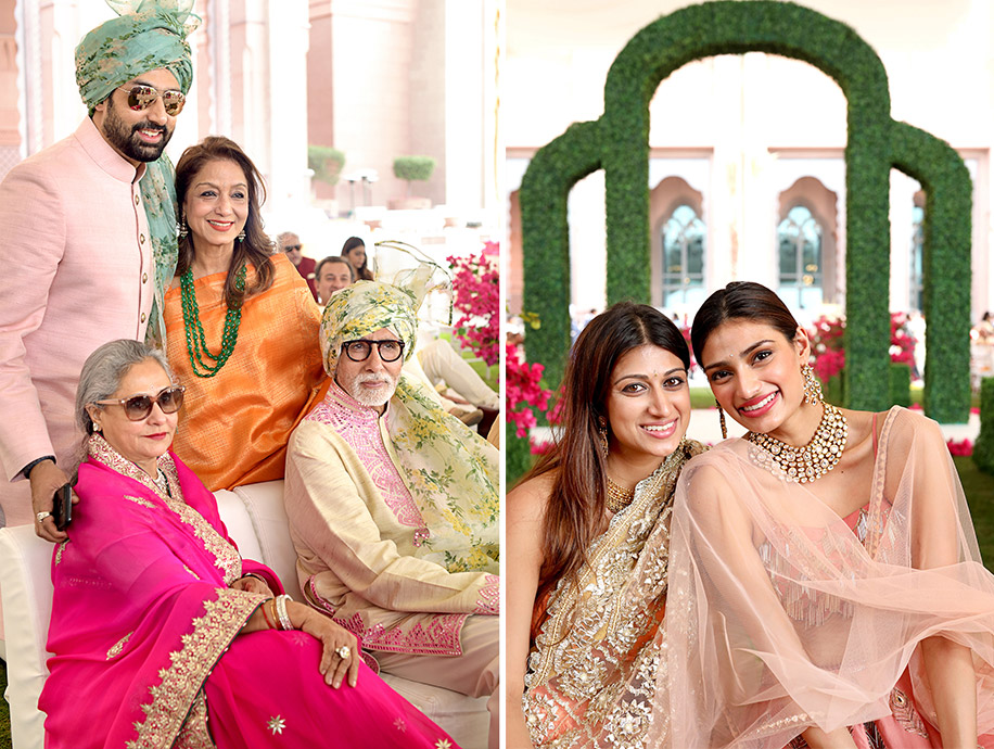 At Anushka and Abhishek’s wedding, the power of pink was evident. Athiya looked resplendent in her dusty rose lehenga. First family of Indian film, Amitabh, Jaya and Abhishek Bachchan were also color-coordinated to match the theme. The opulent spaces of the Emirates Palace, Abu Dhabi epitomises luxury living and played worthy host to a glittering guest list.