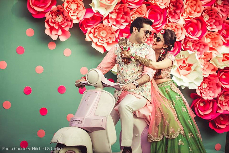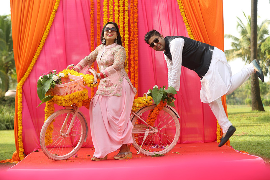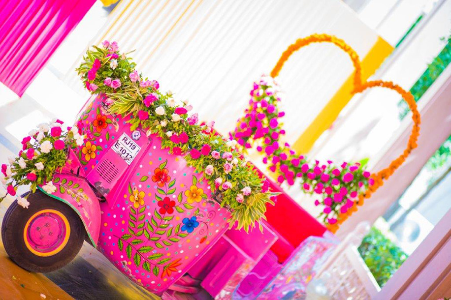 The rickshaw is back in quirky décor trends but this time as a huge photo booth prop. Personalize the ride with some bright colors like this one curated by Elite Wedding Planner and you’re all set to give guests a memorable ride!