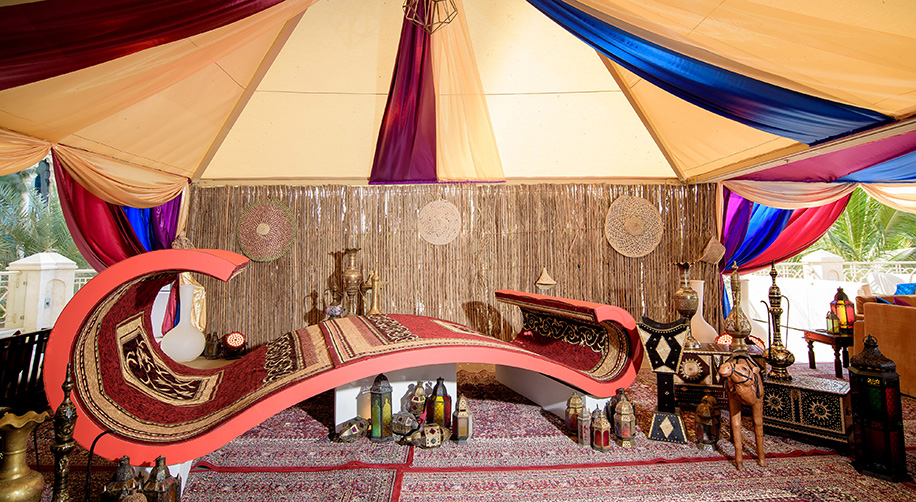 Channel Aladdin and Jasmine’s rollercoaster love story with this flying carpet backdrop inspired by the tale. You can make yours an Arabian Nights’ theme with no more than a canopy tent and some Arb touches like this photo booth put together by Vivaah.