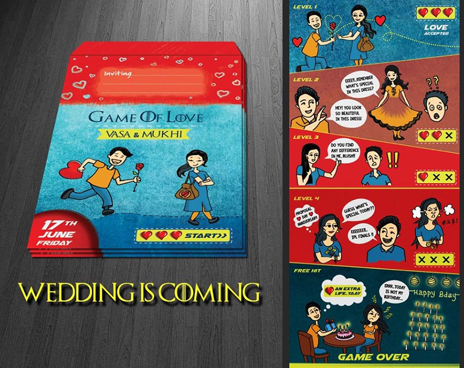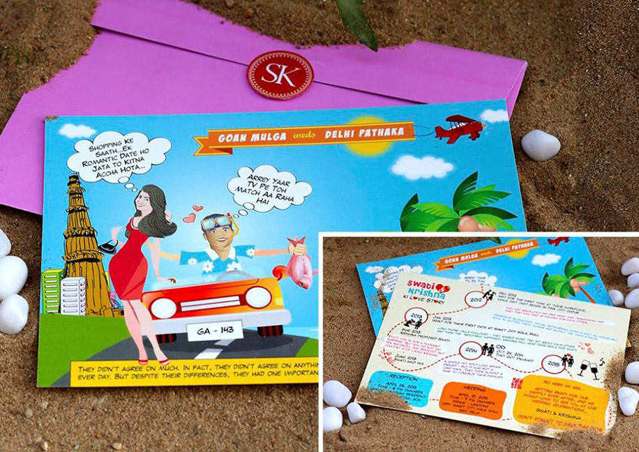 Trust Thumbspark Creative to put your childhood dreams into reality by designing a special, comic strip-inspired wedding invite! Swati and Krishna’s wedding invite is a wonderful mix of pop culture design interspersed with comic book humor, with even a handy map specifically crafted to introduce their guests to their love story!