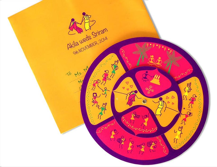 Conceptualized and designed by artist Mekala Murali of Pathrika, this super wedding invite has an alter ego. Not only is it creatively designed but it also doubles up as a wedding film CD- true genius we say!