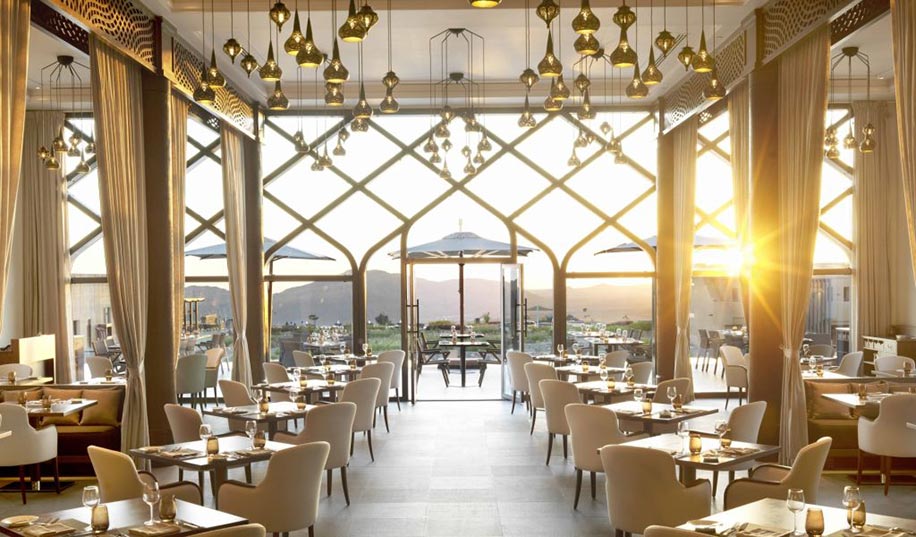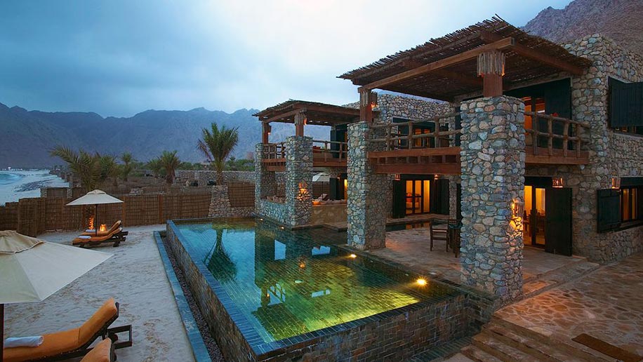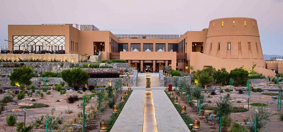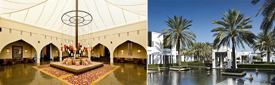 Situated on the beachfront, near the brilliant blue waters of the Indian Ocean, and a short drive from the Muscat airport, The Chedi Muscat is a low-rise luxury resort spread over 21 acres and has its own private beach. All 38 Chedi Club Suite villas have sunken bathtubs, balconies, large windows and pond gardens. Guests can enjoy magnificent views of the surrounding Hajar mountains, gardens and water fountains from the privacy of their rooms. The resort has the largest spa in Muscat and the longest pool in the Middle East. Situated just 2 km from the city center, The Chedi Muscat is an oasis in the middle of bustling Muscat city where guests can immerse themselves in traditional Omani activities (fancy an exotic sheesha?) or shop at the local markets called souks.