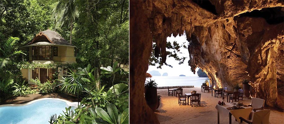 Situated on the edge of the Krabi National Marine Park, Rayavadee Krabi lies next to the azure waters of the Andaman Sea and stunning limestone cliffs. It has 98 two-storey villa-style pavilions whose award-winning designs were inspired by the ambiance and architecture of an idyllic southern Thai village. It also has four luxurious beachfront villas. A two-hour drive from Phuket International Airport will get you to this tropical paradise that is lush with coconut groves. Like many other five-star villa resorts, Rayavadee Krabi also offers dedicated butler services to guests.