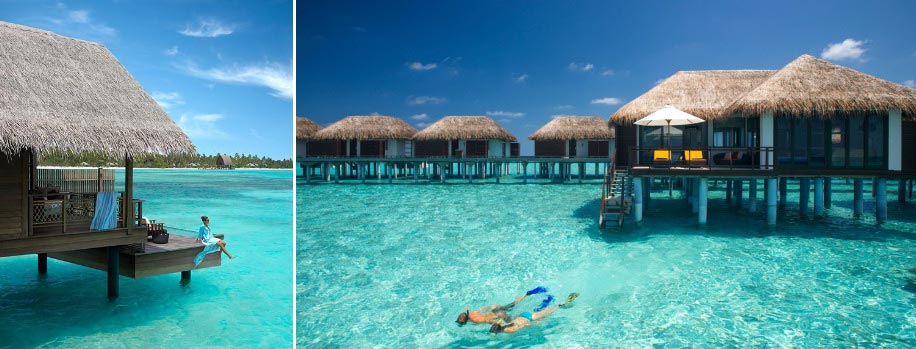 If you fancy waking up to the sound of the waves right below your bed, book into Shangri-La’s Villingili Resort & Spa which has 60 stunning over-water villas which are built on stilts and situated in the lagoon. This elite resort’s 132 villas also include treehouse villas, again built on sturdy stilts and surrounded by lush greenery. You are assured of perfect privacy in a pristine environment as the resort is situated on the 2.5 km long Villingili Island, which is Maldives’ largest single-resort island. It offers four distinct and different outdoor venues ranging from the lush jungle, a sprawling 9-hole golf course, sandy beaches and reef side area which is ideal for wedding parties. If your guests are in the mood for some adventure, they can take their pick from exciting options such as diving, cruising in a glass-bottom boat, tennis sessions, snorkeling, eco-tours, scuba diving and other water sports activities.