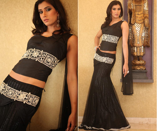 Black lehenga with Swarovski and diamante work