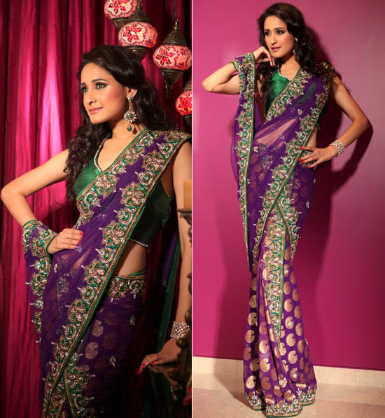 Purple and green two-piece saree