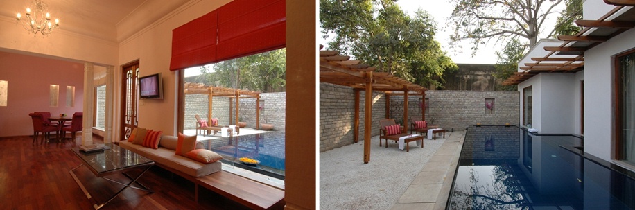 The Lodge has individual bungalows that feature large courtyards, shady private sit-outs, outdoor showers and lovely roof-top sleep-outs known as machaans.