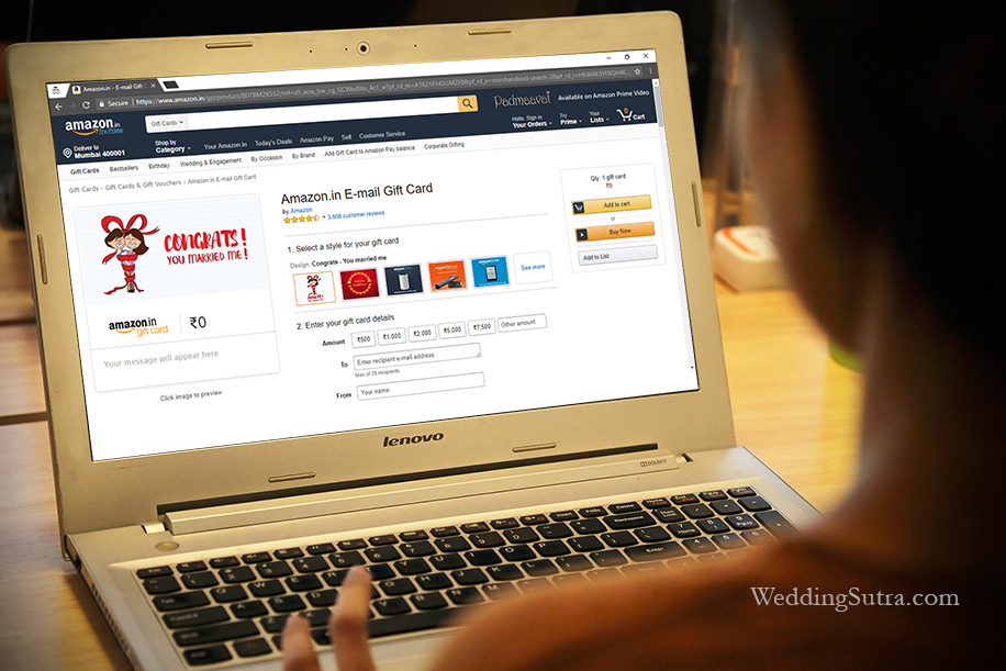 Just one Amazon Gift Card essentially opens a world of options for the newlyweds to choose from. It lets you select from over 125 other vouchers, such as Shoppers Stop, BookMyShow, MakeMyTrip, Cleartrip, Taj etc. This means that through Amazon the couple can not just order products, but even plan their honeymoon!