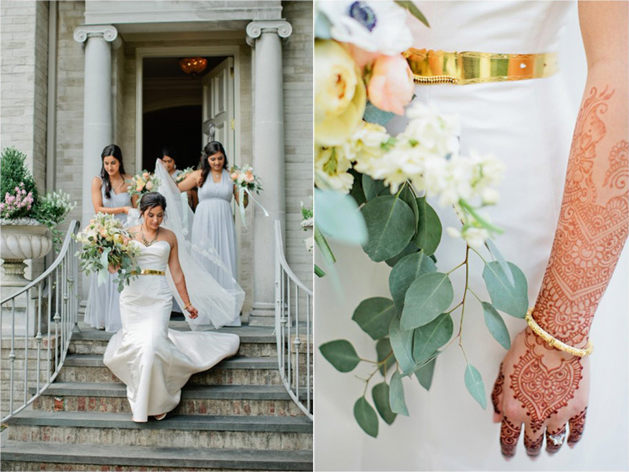Sarada married her American boyfriend in a white wedding ceremony but created a set of elements that were a nod to Indian culture. In resonance with her South Indian roots, she wore a gold kamarband as accessory to her fishtailed white gown. She also accessorized with gorgeous kundan jewellery which went so beautifully with the entire ensemble we think this could be the start of a trend. Sarada wore two worlds at one white wedding and her look was truly unique.
