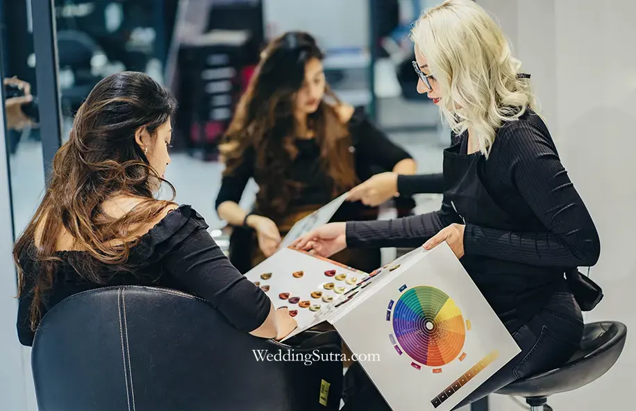 Talking about the best time to schedule your final visit to a hair salon, the colorist recommended, “A new hair color looks its best after two shampoos. So the best time for a hair color transformation or a color refresher is to visit your hair salon a week before the special day.”