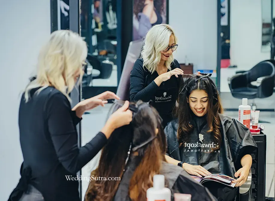 Planning for your wedding includes a lot of big decisions, and you need to get an early jump on things such as finalizing your makeup and hair looks to avoid any stress. Consulting your colorist a few months in advance and trying out your desired hair transformation is a great way to ensure you get what you want while allowing for any corrections and changes to be done in time. Typically most hair color treatments fade in three to six months, and can be refreshed later. Twisha shared, “Once you achieve the look you are happy with, make it a point to get all the color details from your stylist. While getting it refreshed by the same colorist is advisable, if you have the product information, any Schwarzkopf Professional can do a great job of restoring it to its glory.”