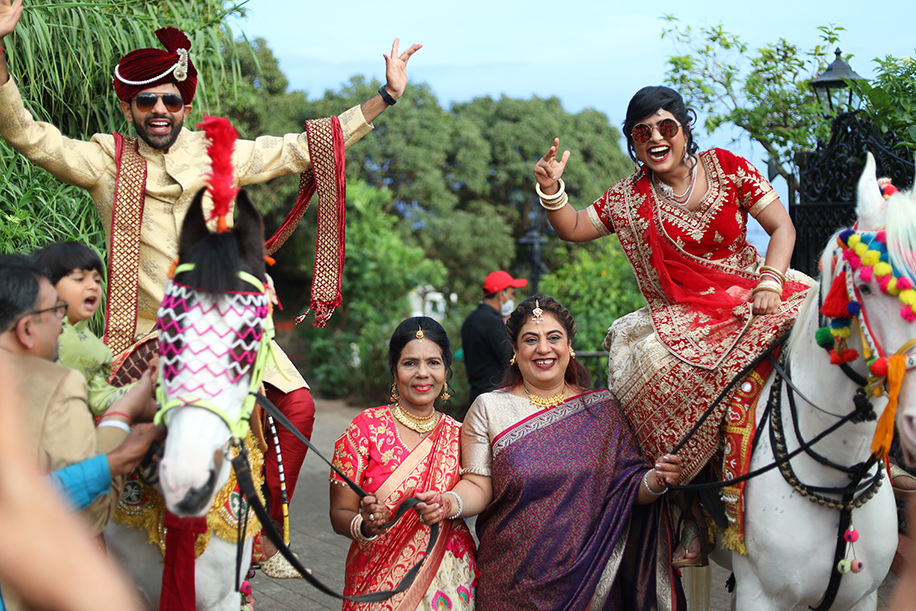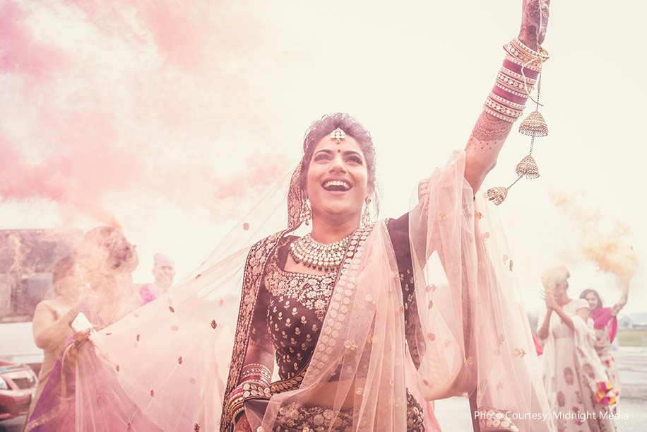 A baraat, for the groom’s family, is the ultimate party – unrestrained dancing, lots of music backed by the excitement of the wedding. On the other hand, the bride is expected to look pretty and be demure. Kari Rao was certainly not the kind to accept such obvious double standards passed off as ‘tradition’. So she planned her very own bridal baraat for her entry into the wedding venue. With her closest friends and family, she put on a show that none of her guests will ever forget. This is a trend that we’re super excited about and can’t wait to see other brides follow her path!