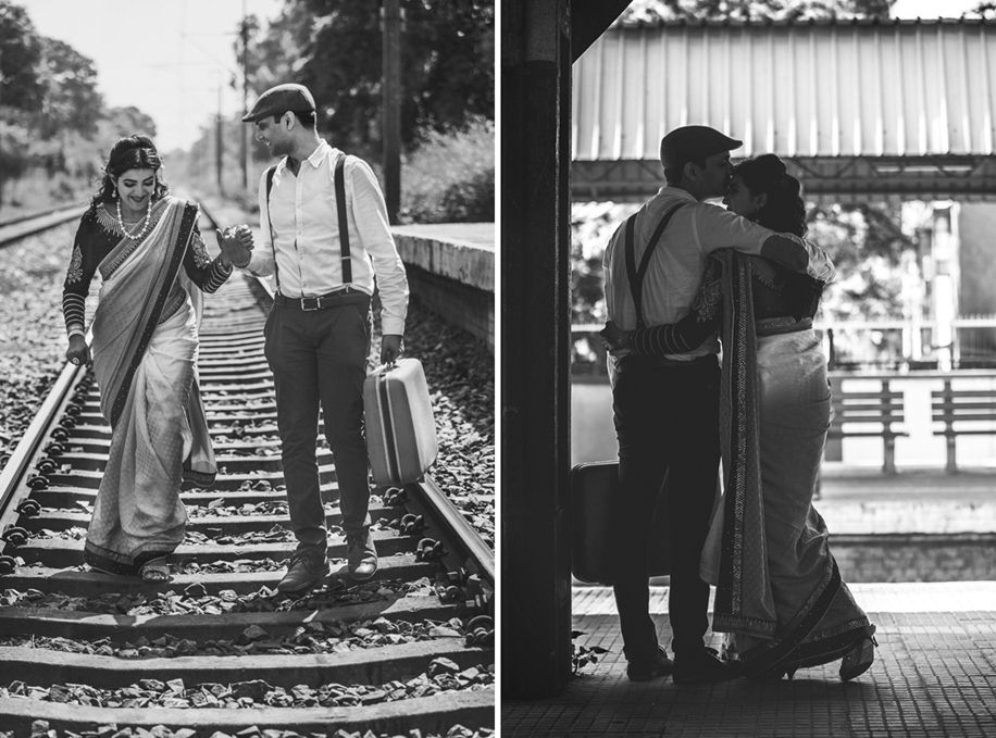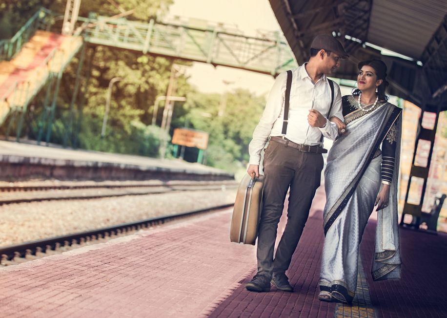 We guided the couple through their outfits, accessories and styling. With make-up artist – Ishita Sood on board, we pulled out all stops to authenticate the vintage look. We were ecstatic to see that Tanvi and Deepak had paid attention to our suggestions and looked absolutely stunning on the day of the shoot. For the venue, we chose a fairly less crowded railway station in Delhi – Lodhi Colony.