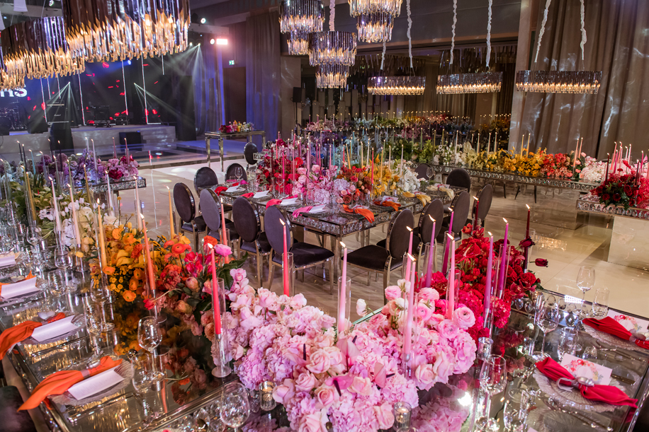 At one end of the ballroom an LED stage displayed customized visuals consistent with the theme. The acrylic dance floor with silver geometric designs, on the other hand, offered a striking contrast, creating an unparalleled setting that was graced by Badshah, as well as a Lebanese band and a DJ who played the catchiest records all night. One of the highlights of the event was the customized cheese bar for which a cheese connoisseur was flown down to create a unique display and deliver the perfect experience for all guests.