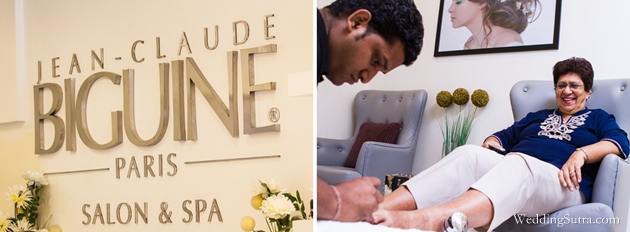 Natasha and Mark’s review: Abhilasha Singh, Head of Makeup services at the Khar Salon informed us about the different packages including a comprehensive skincare consultation and a pre-wedding regime. In addition to the regular pre-bridal and bridal treatments, JCB also create personalized hair and make-up for wedding functions. There are packages for the groom too. Mark’s grandma, (Susie Vaz) was extremely happy with the express manicure and pedicure, which they offered as part of the consultation.