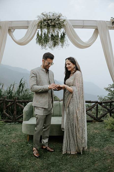 IAS officer Pari Bishnoi and Haryana MLA Bhavya Bishnoi celebrated their love with a beguiling engagement at Taj Chia Kutir Resort & Spa in Darjeeling. Hailing from Bikaner, Pari is currently posted in Sikkim while Delhi-born Bhavya lives between the capital and his constituency of Adampur. The beautiful moments from their engagement ceremony were artfully captured by WeddingSutra Favorite – The Blemished Tales.