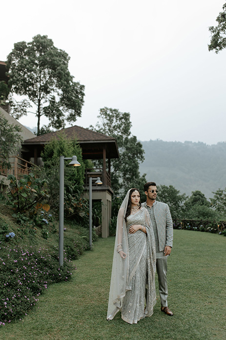 Set amidst the plush tea estate of Makaibari, the oldest in the world dating back to 1859, the luxury resort offered a mystical backdrop for the intimate occasion. Dressed in matching tones of muted sage green, the bride and groom exuded timeless elegance, which resonated with the minimalistic ethos and soft, vintage aura of the space. The breathtaking shots by The Blemished Tales wove a tale of romance and magic, set against the verdant greenery and misty hills of Darjeeling.