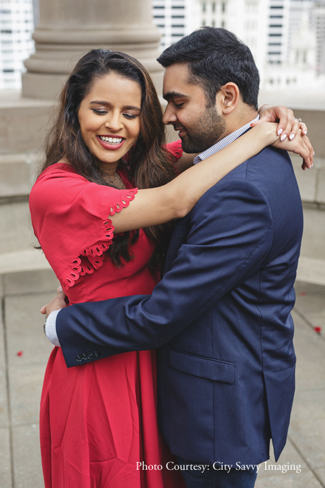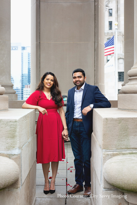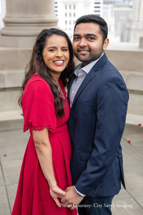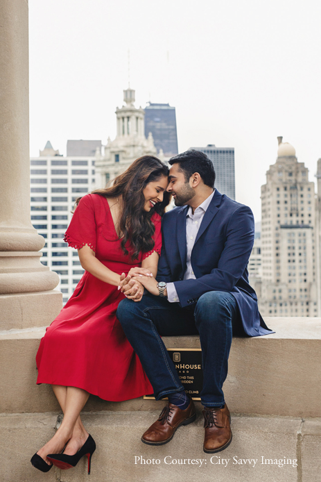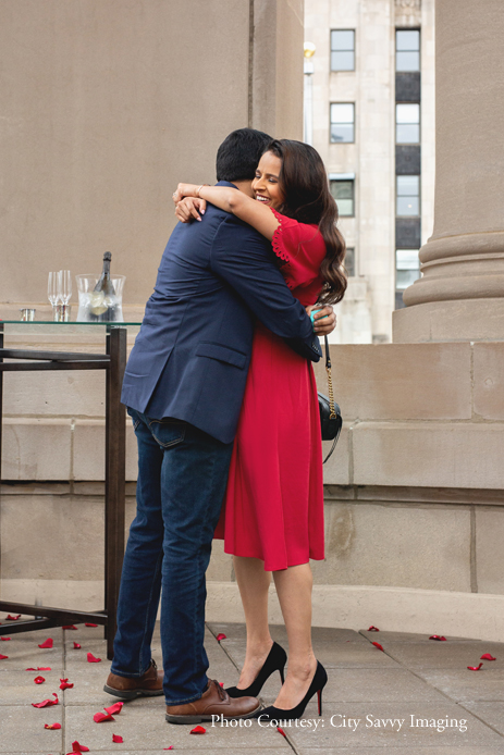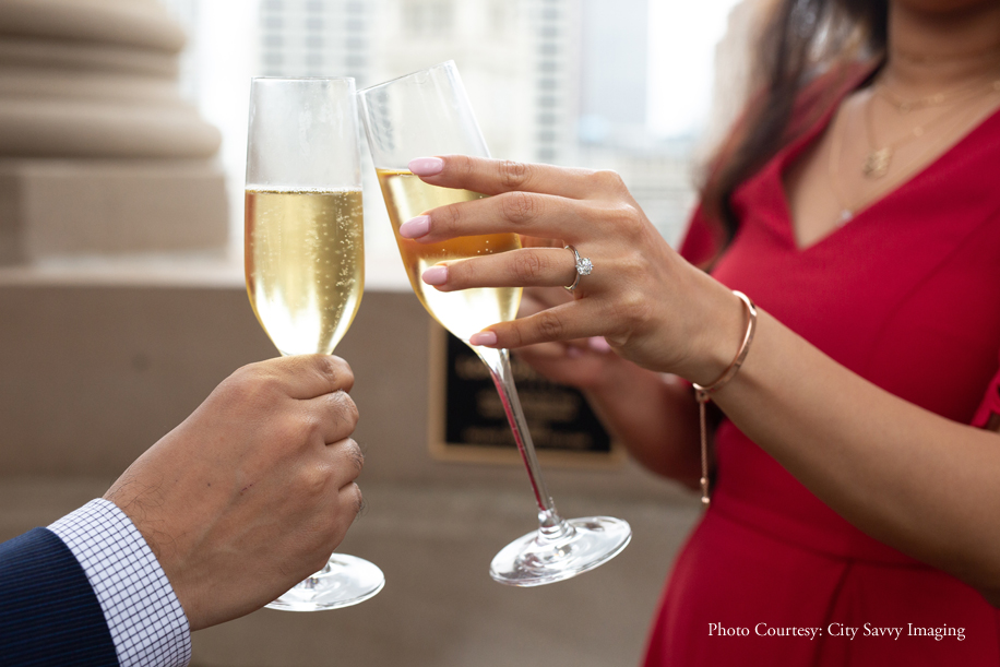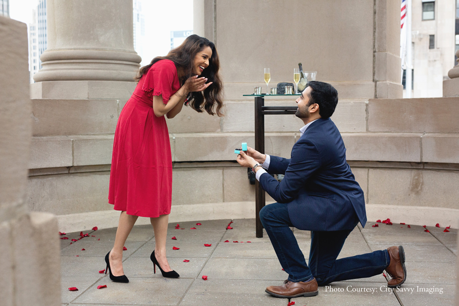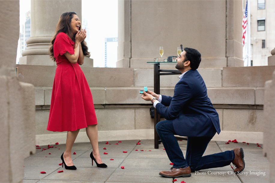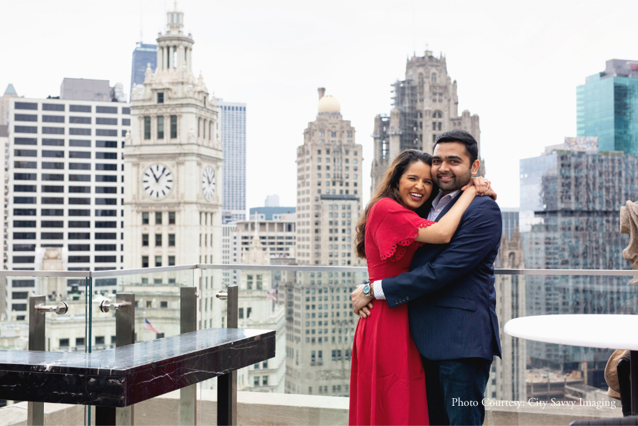 Jeet surprised Zalak with a romantic proposal, getting down on one knee to pop the all-important question. Overlooking the dreamy cityscape of Chicago, the picture-perfect proposal took place on the roof-top of Hilton’s London House Chicago, a chic luxury destination in the city.