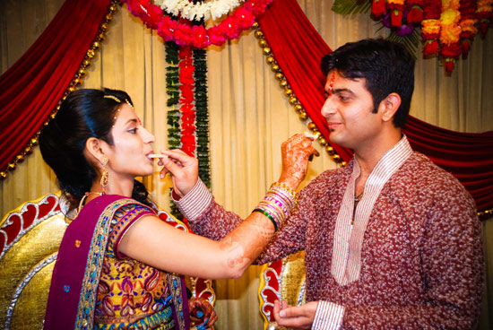 Says Nikunj: “My parents were visiting us here in Boston, and they brought up the topic of us getting married. We had thought about getting married after a year or two, but not given serious thought to a fixed month. When we looked at our leave schedules and visa stamping dates, we realized that we would not be able to come to India together for the next 3-4 years. Thats when we decided to take the leap in a short time frame. Once the decision was made, it was a crazy week- less than 10 days, before we actually got onto the plane. I was co-ordinating with my brother and bhabhi from here, and Dipti was coordinating with her mother, and then my brother was in turn coordinating with her parents. Because of the time difference, we had some sleepless nights here even before we got onto the plane. It was quite nerve wrecking, to think about how people in Mumbai would be able to arrange everything in less than two weeks. What was more frustrating was that we, sitting in Boston, could really do nothing but talk. Luckily we were able to find a good wedding hall, caterer & decorator and everything worked out.”