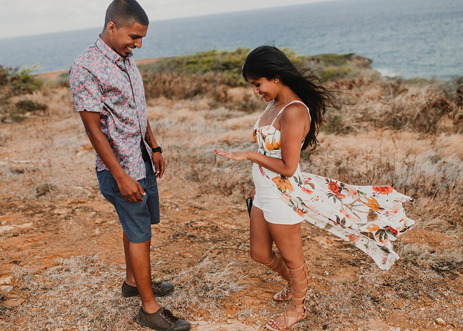 When the time came to pop the question, Rushil chose the scenic Hanauma Bay with its bird’s eye view of the clear blue Pacific Ocean surrounded by lush rolling hills. A swift ‘yes!’ from Pooja came forth after which the newly engaged couple embraced and enjoyed the stunning view around them.