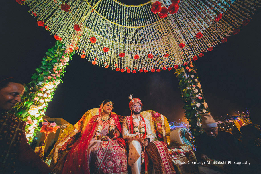 Introduced by their family members, Sweta and Vibhu knew from the first glance itself that they were ‘meant to be’. A classic case of love at first sight, this Marwari couple tied the knot in a series of extravagant yet traditional wedding functions that celebrated their vivacious culture. With WeddingSutra Favorite – Crystal Ball Events in charge, with their superior planning skills and innovative decor choices, this couple’s wedding was nothing short of a feast for the eyes. Also, capturing each meaningful moment of these grand celebrations was WeddingSutra Favorite – AbhiSakshi Photography who won the hearts of the bride and groom with their well-composed creative clicks.