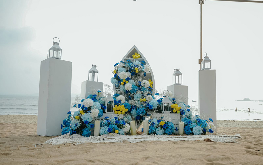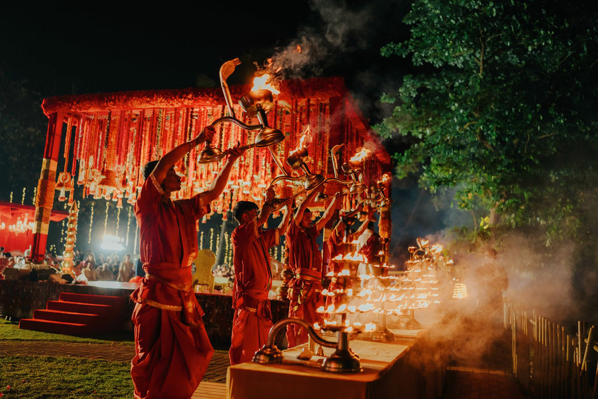 The finale, the Nalachadi Wedding Ceremony, was a soul-stirring affair. Rooted in tradition and earthy elegance, the sacred rituals unfolded by the sea under a mandap adorned with marigolds and holy threads. The air held a hushed reverence as the couple exchanged vows, surrounded by love, ocean breezes, and the blessings of those dearest to them.