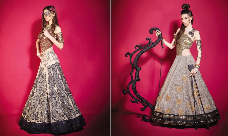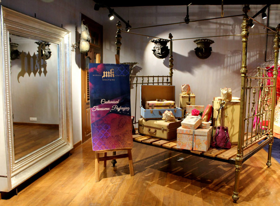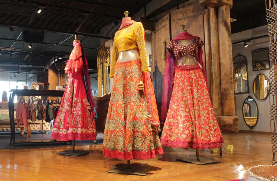 They are privy to the most exclusive couture ensembles and limited edition work by designer duo Monica and Karishma; intricately designed lehengas, fusion gowns and sarees, from romantic and minimalistic to dramatic and decadent, there is something for every wedding occasion.