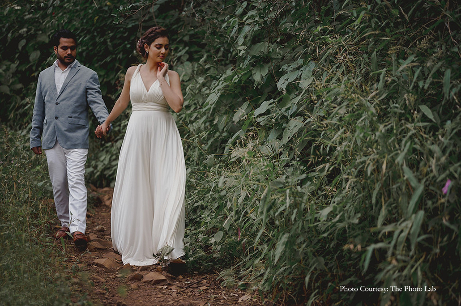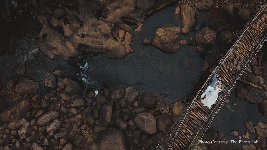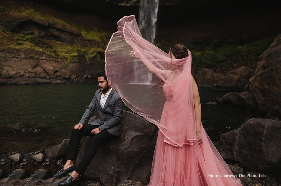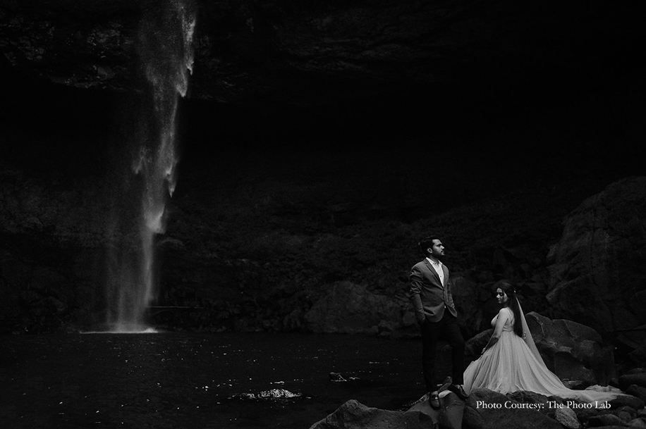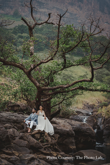 Speaking about their pre-wedding photoshoot’s location, Sneha says, “The team of The Photo Lab decided on the location and planned everything. We couldn’t have imagined a better pre-wedding shoot. The location, near Pune, was so dreamy and scenic, and it included a waterfall. It just felt right as both of us love nature.”