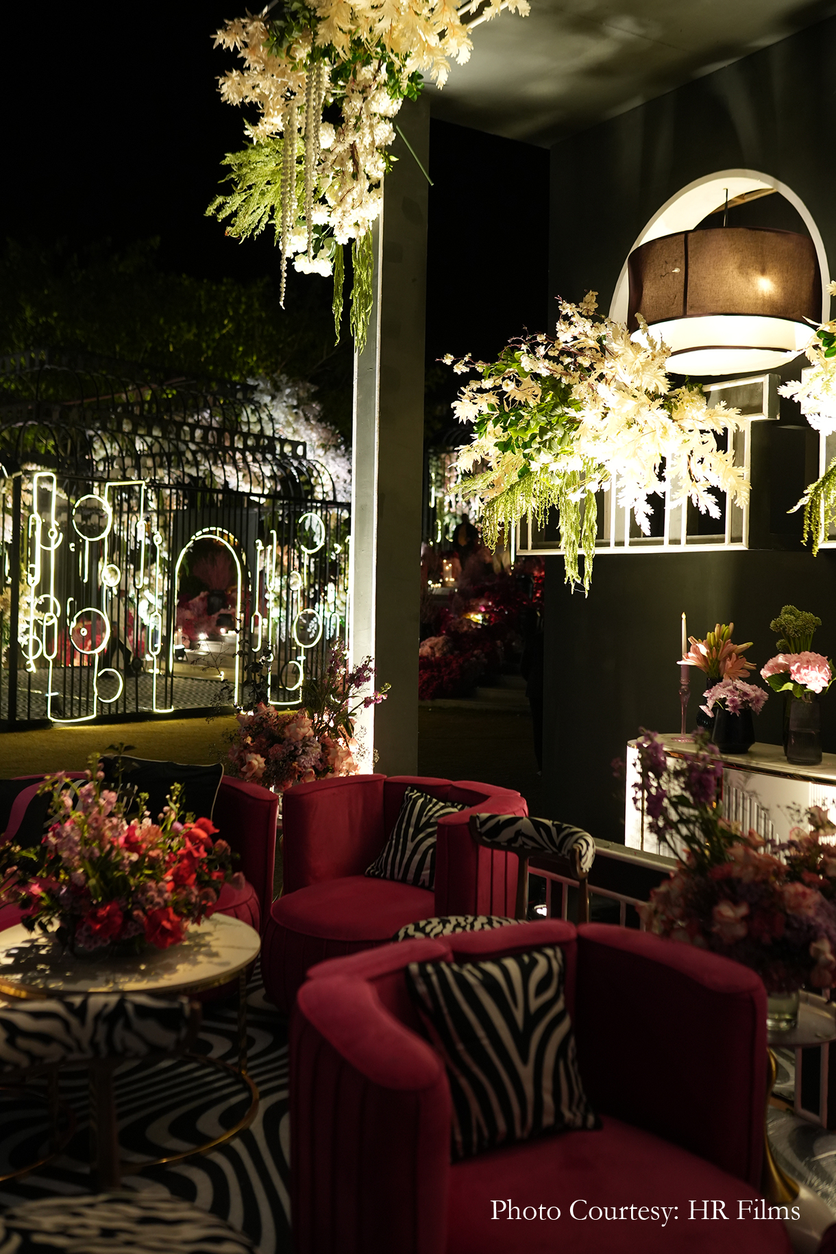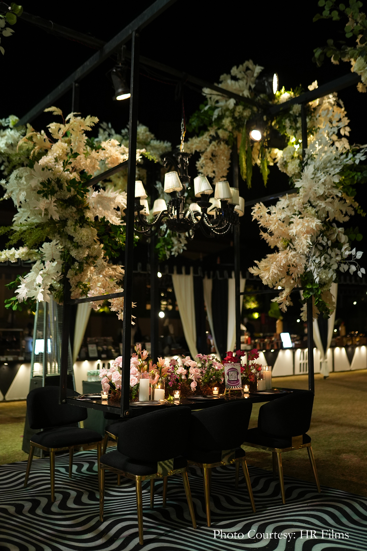 “One of the most thoughtful details we added was the placement of handwritten lyric scrolls on each table, allowing guests to reminisce about timeless melodies before engaging in the spirited musical exchange. The challenge? Ensuring that the space, despite its opulence, felt deeply personal and inviting” shares Purva Patel. With strategically placed lounges and layered lighting, the evening saw an effortless blend of emotions and elegance.