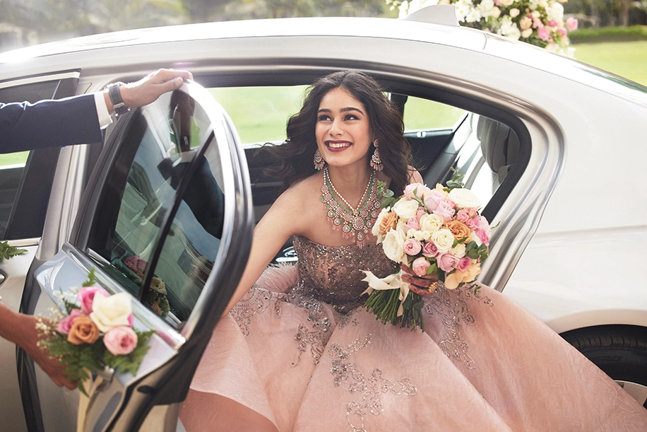As all eyes turn to you, claim your grand entrance in the most exquisite of Polki jewellery crafted to add magic to your wedding finery and make you feel like the most radiant bride of all! The subtle shades of Russian emeralds and pink morganites embellished with polki diamonds make it truly a one of a kind piece. And absolutely perfect for the spring and summer weddings.