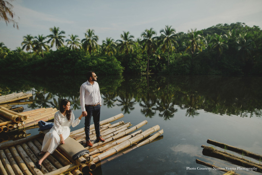 “Devashish and I spent a lot of time brainstorming and putting thought into the kind of aesthetic we wanted for the shoot, and the natural beauty and coastal charm of Kerala, God’s own country, just called out to us. We finalized the beguiling Taj Bekal Resort & Spa as the location of our shoot. Taj is known to have properties that are breathtaking, but this one was truly a paradise in itself. The property spans over 26 acres and offers a confluence of beach and backwaters. Since we both love being close to the sea, this feature was a plus.”