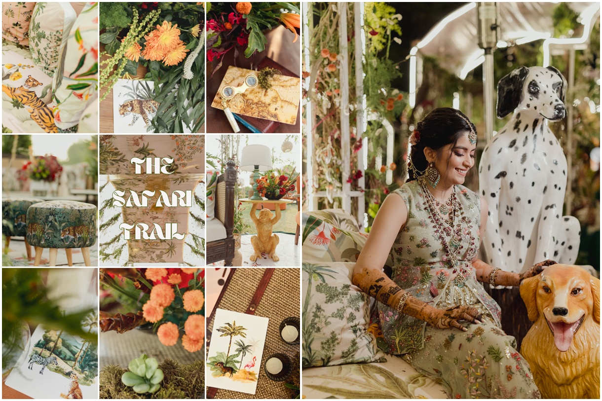 Bringing together the bride’s love for animals, nature, and all things adventurous, WeddingSutra Favorite – SoulScapes transformed the lakeside lawns of Suryagarh, Jaisalmer, into a lush wilderness for a Mehndi celebration that felt straight out of a storybook. Imaginatively titled The Safari Trail – A Journey into the Wild, this visually immersive celebration was an ode to both luxury and personal expression.