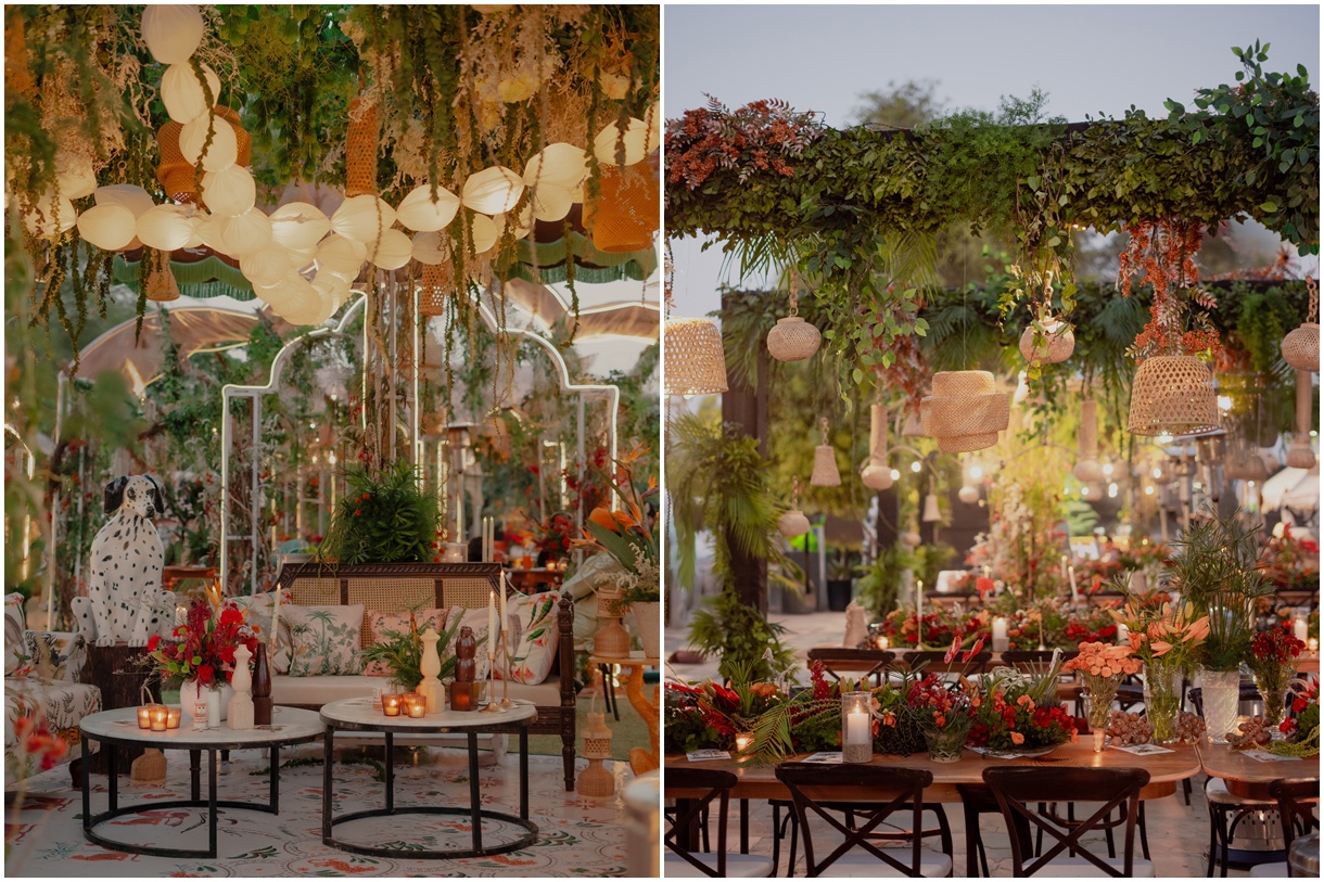 “We aimed to design something that felt alive, where every corner had a soul and every detail told a story,” shares Aastha Maheshwari, the creative force behind SoulScapes. “We wanted guests to feel as though they were stepping into an enchanted jungle—rich in texture, emotion, and detail. This wasn’t just about a pretty setup; it was about crafting something meaningful and unforgettable. Something that made every guest pause, smile, and feel like they’d just stepped into the heart of a dream.”