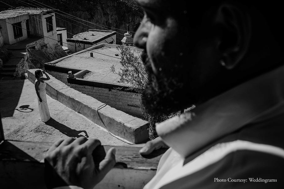 Talking about her favorite moments from the shoot, Tanvi says, “I was initially very camera conscious. Anmol and the team of Weddingrams brought me out of my shell and it turned out to be the most enjoyable and memorable experience of my life. I love the black-and-white clicks for their elegance and timelessness. Somehow, devoid of any color, they capture the true essence of the emotions of the moment. These pictures completely personified our bond and the joy we felt there together. I also love the picture we clicked with the local kids. It radiates fun, innocence and warmth.”