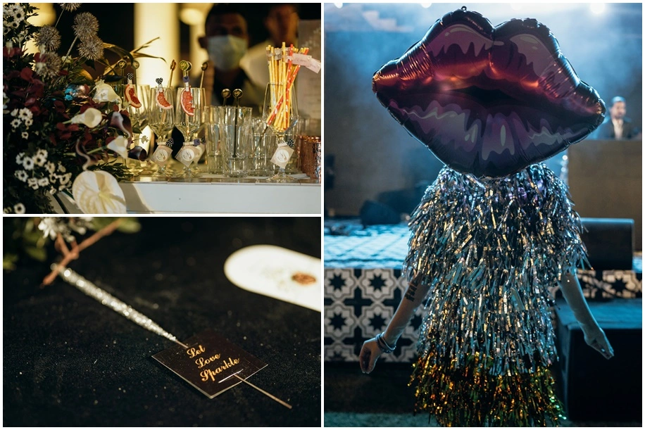 The festivities came to a spectacular close with a night of delectable dining and entertainment. Decked out in cocktail couture, everyone enjoyed the formal dinner laid out at the Bollywood Night. The classic decor in black and white saw a gothic vintage twist with metallic candelabras, floral arrangements using feathers and embellishments, name tags with calligraphy and more. The guests grooved and cheered as they enjoyed the live performances and the couple’s beautiful dance.