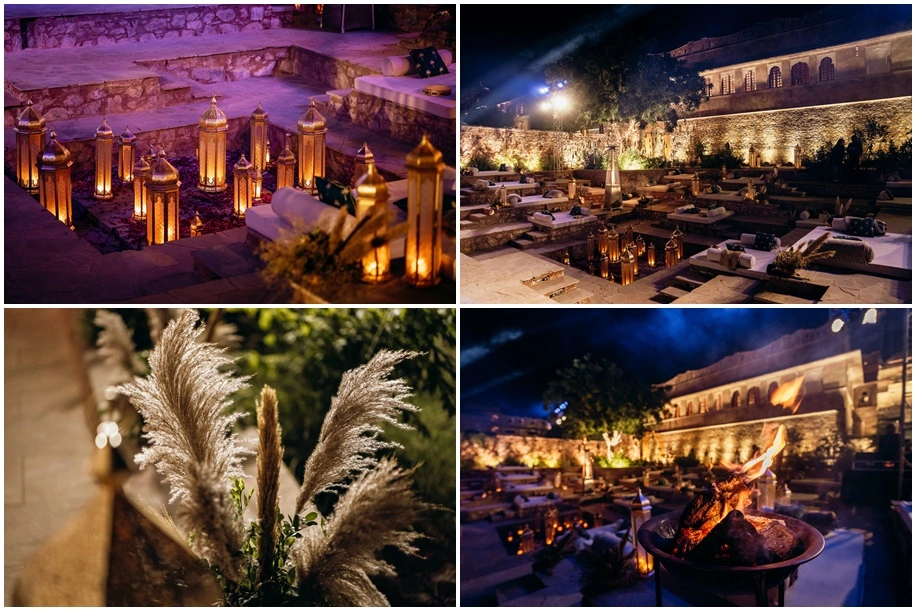 The evening continued with a soulful Sufi Night at the Bawdi of Zenana Lawns, where the couple and their guests relished heart-warming food around the bonfire under the starry night. The soiree was replete with lip-smacking kebabs and a themed dinner menu for a relaxed night of fun and enjoyment.
