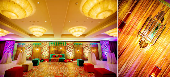 The wedding venue was Madinat Jumeirah on Jumeirah beach. The setting was the Joharah ballroom of Madinat Jumeirah, the stage was over 50 feet wide and put together splendidly. A smaller draped stage to one side of the main stage was where the the Nikaah was held. After the Nikaah, Saif and Tarnim entered together lead by an entourage of Dabka dancers. After the evening concluded, rukhsati happened at the pier where the couple boarded a small boat and bid goodbye to the guests.