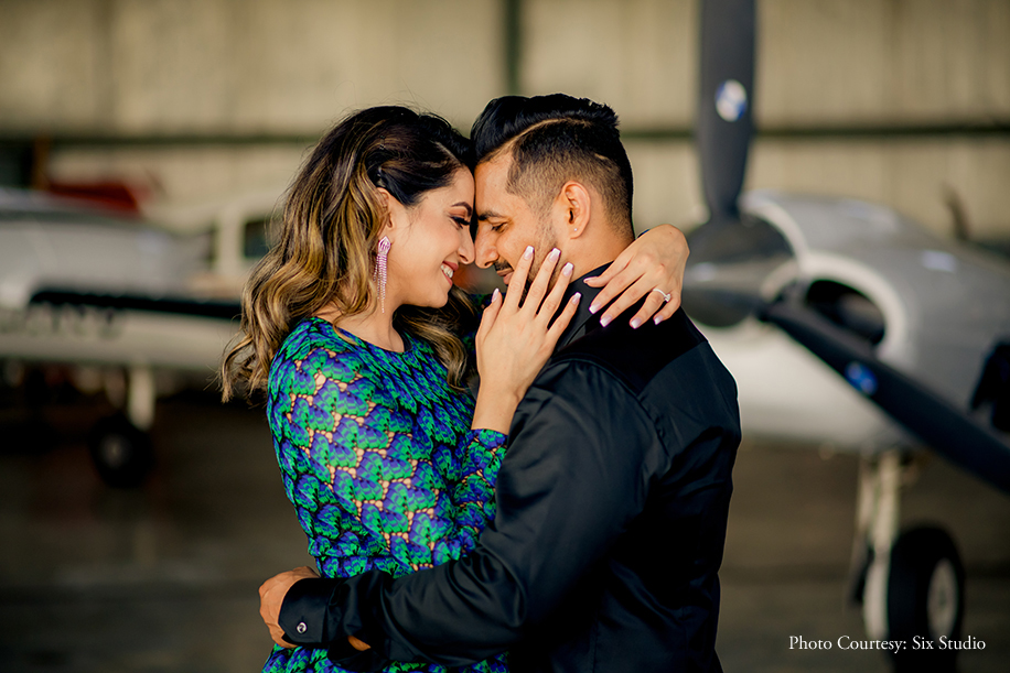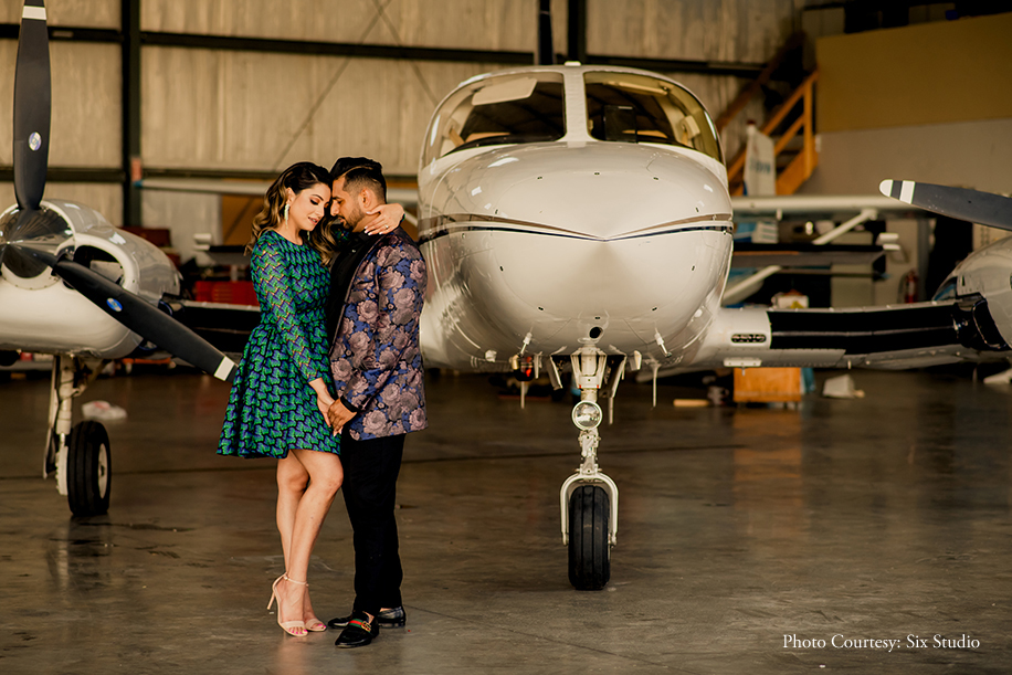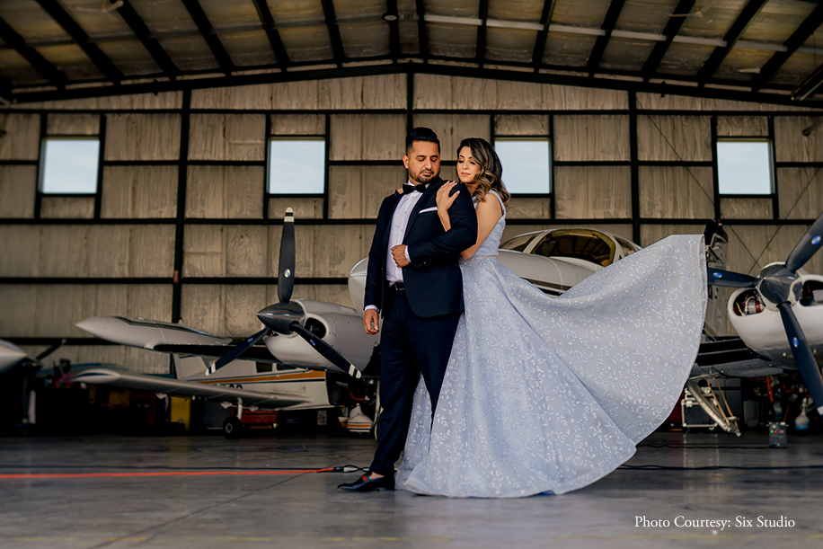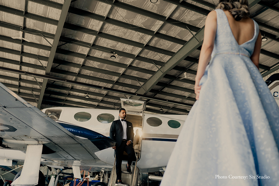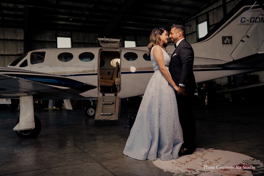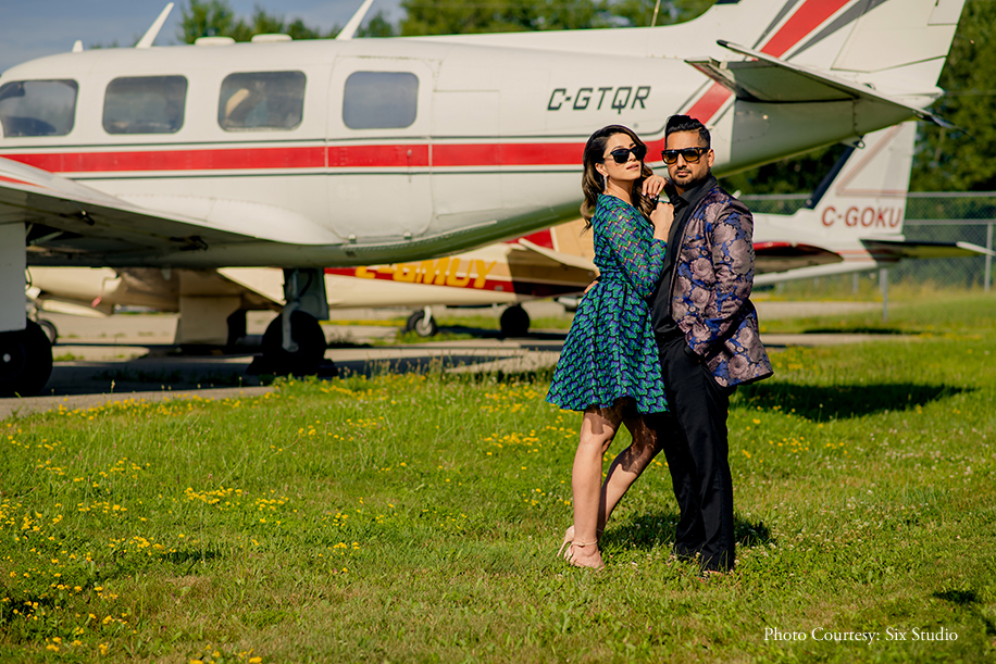 Akanksha and Karan planned a pre-wedding photoshoot in Toronto’s Airplane Hangar. This unconventional place was transformed into a fairytale-like setting for their shoot. From vintage cars and private jets, to a live romantic musical performance, this couple’s photoshoot is one to go down in the books of grandeur!