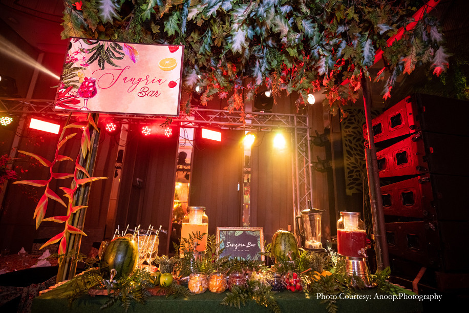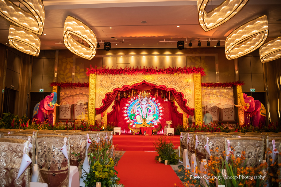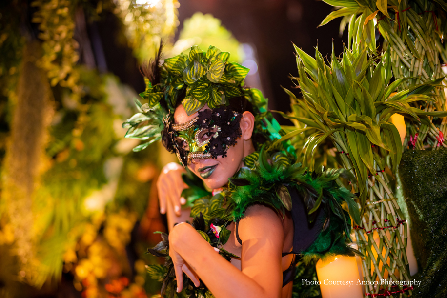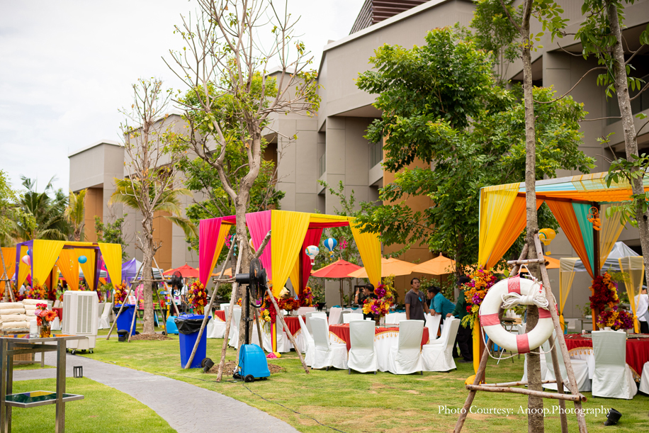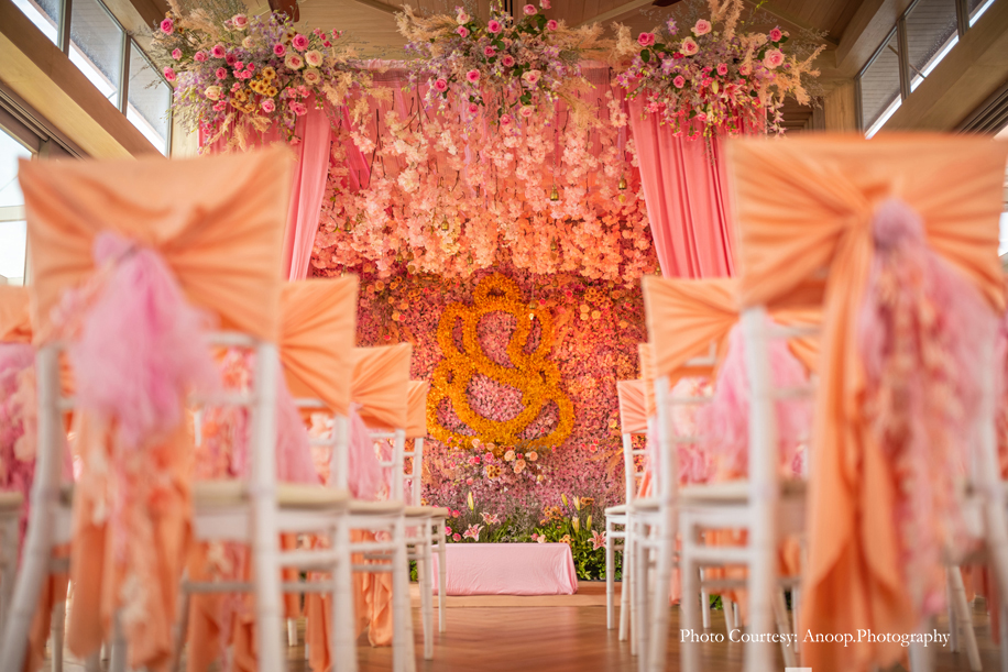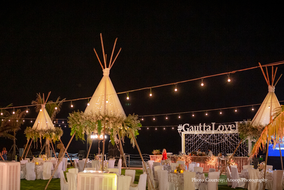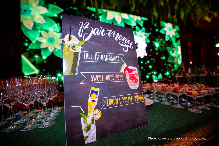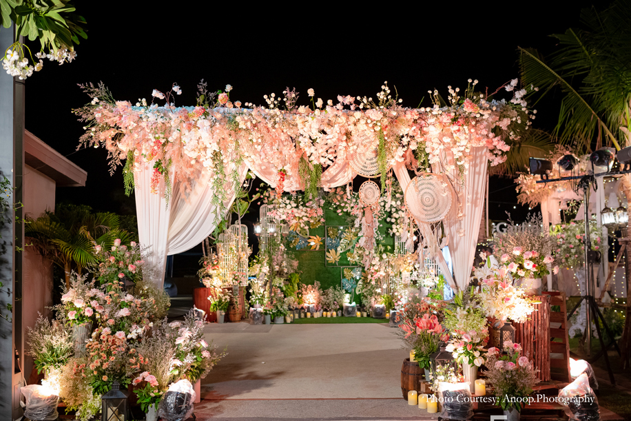 Bamboo dancers welcomed the guests to the resort, where the gorgeous floral decor at the reception, pond and fountain enthralled them. There were also 3D butterflies and a structure of Lord Ganesh erected for an auspicious start to the celebrations. The festivities kicked off with a serene Behrano ceremony, which involves saying a prayer to invoke the blessings of Jhulelal Sai. It was attended by just the families and a few close friends of the couple.