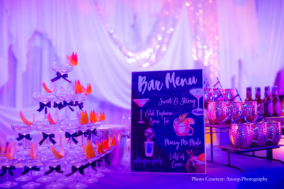 The couple shared a few thoughts on their experience with Revel Events, saying, “Our wedding was beautiful and glamorous. The mood boards had looked beautiful, but to actually witness the beauty unfold was such a satisfying feeling. The flowers, decorations and lighting at each function were stunningly gorgeous. We thank Revel Events from the bottom of our hearts. We wish them the very best and look forward to using their services for the next wedding in our family.”