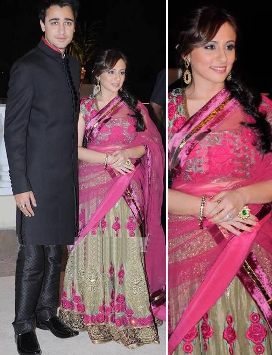 Avantika in a gold-and-pink lehenga, Imran in a black bandhgala by Manish Malhotra
