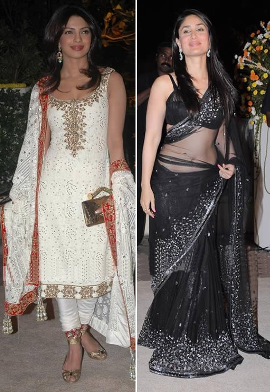 Priyanka Chopra in a Manish Malhotra churidar kurta. Kareena’s black and silver sari is oh-so-bollywood