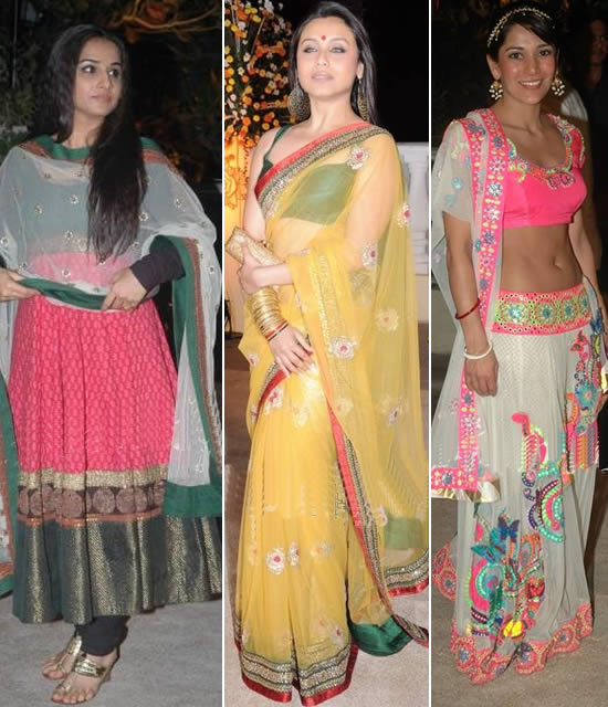Rani Mukerji and Vidya Balan wore their favourite designer- Sabyasachi. Koel Puri in a funky Manish Arora lehenga