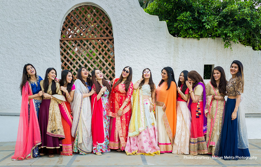 With twins comes double the madness and double the fun. And this was just the case when Aastha and Aashna decided to have a pre-wedding photoshoot before they got married to their respective best friends on the same day. Only thing – instead of shooting alongside their partners, they called upon their entire girl gang, further adding to the fun-quotient of their photographs!