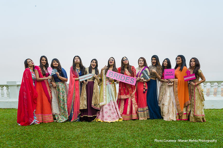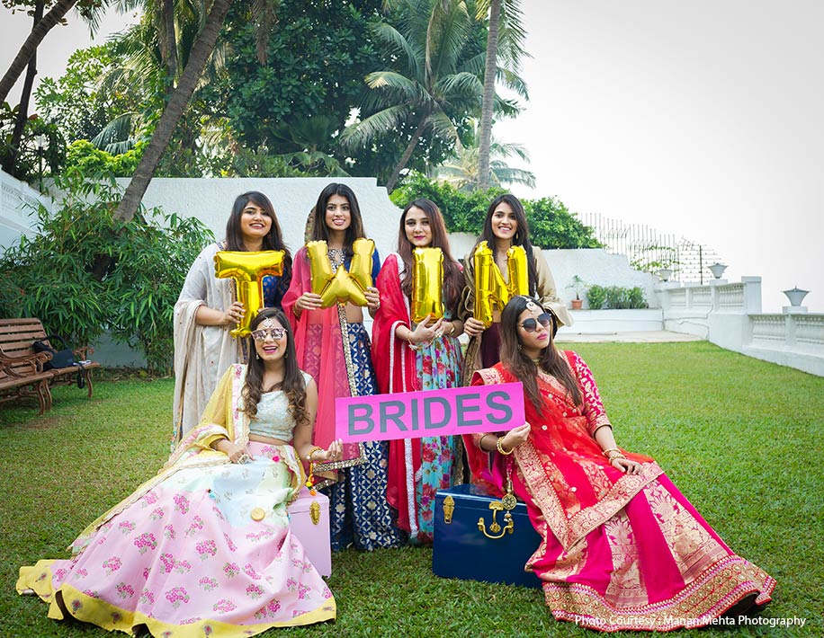“When it came to planning our pre-wedding photo shoot, we knew that just like our wedding, we wanted this too to be unique. Our best friends have been a part of the journey ever since we can remember and we wanted them to be involved at every step. That’s when we decided to have a pre-wedding shoot with our bridesmaids. We looked up ideas on Pinterest and religiously followed wedding blogs. We then fixed our outfits and theme and got in touch with the photographers, artists and prop vendors in order to finally execute all our ideas.”