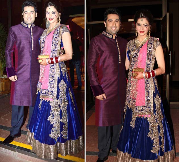 Aamna looking stunning in a royal blue velvet lehenga by Manish Malhotra, which she teamed with elaborate kundan jewellery.