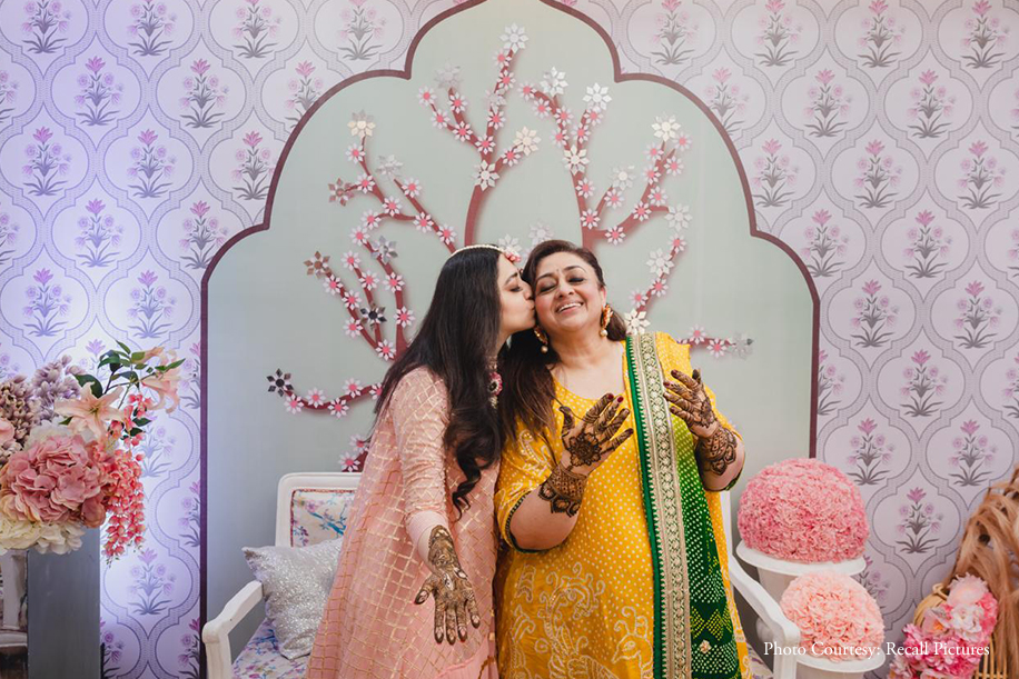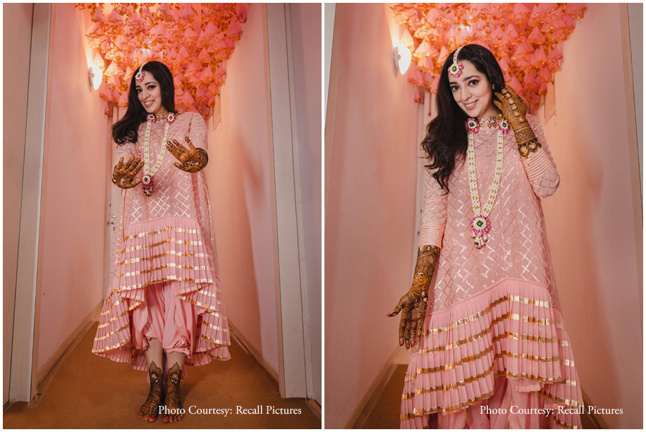 The pre-engagement Mehendi function saw charming floral décor in soft pastel hues, while the radiant to-be-bride looked divine in a breezy peach outfit by Vvani Vats. Nidhi kept her look fresh and youthful with a glowing visage, flowing locks and floral jewellery. Acclaimed celebrity Mehndi Artist Veena Nagda took to social media to share pictures of the gorgeous mehndi while the bride’s friends and actress Dipika Kakar and Sara Ali Khan also graced the event.