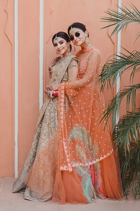 Fresh and radiant, tangerine is a fun-loving color that invites a smile! Alia Bhatt shows us how she put together hues of the juicy color with hints of teal in a voluminous tulle lehenga at her bestie’s wedding in Jaipur. As a bridesmaid, you can pair up dainty earrings or a statement maangtikka and let the zesty color speak for itself as you pose for those selfies with your squad.